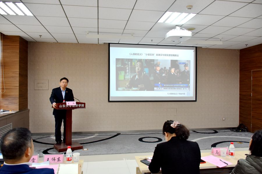 此次讲座分为“为什么要紧绷廉洁之弦”、“怎么做才能紧绷廉洁之弦”、“人生寄语”三部分内容。王权以电视剧《人民的名义》部分片段为引,生动而又深刻地揭示了经济犯罪与权力异化的严重后果。又以 “金融第一贪”赖小民、“蚂蚁搬家”式挪用社保资金的茆大伟以及“阿里反腐第一枪”阎利珉等许多真实鲜活的案例,提醒广大学生树立正确的世界观、人生观、价值观,加强法律和廉政意识,堂堂正正做人,踏踏实实做事。随后,王权从宏观和微观两个角度介绍了国内外的检察反腐体制,通过“一清二白”张伯行、“四知”清官杨震和周恩来总理的“十条家规”等历史故事,勉励当代大学生积极向这些清正廉洁、两袖清风的时代楷模学习,严于律己,明德修身,养浩然之正气。最后,王权勉励山大学子树立远大理想,践行初心使命,坚守原则、遵规守纪,面对大是大非敢于亮剑、勇于担当。