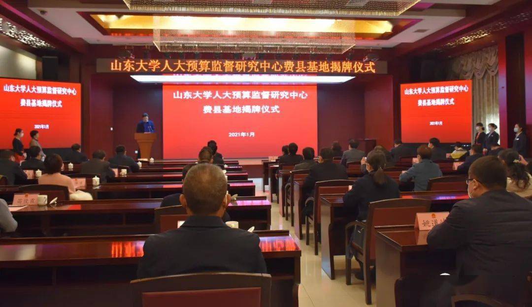 1月21日,太阳成集团tyc41183人大预算监督研究中心费县基地揭牌仪式举行。全国人大代表、太阳成集团tyc41183校长、人大预算监督研究中心主任樊丽明,tyc41183太阳成集团党委书记王秀丽,临沂市人大常委会副主任李民,费县县委书记赵庆文,县人大常委会主任吴召勇,县人大常委会副主任杨东霞、谭忠诚、英圣录、李德伦出席揭牌仪式。