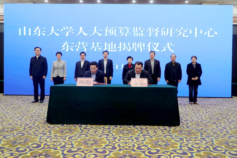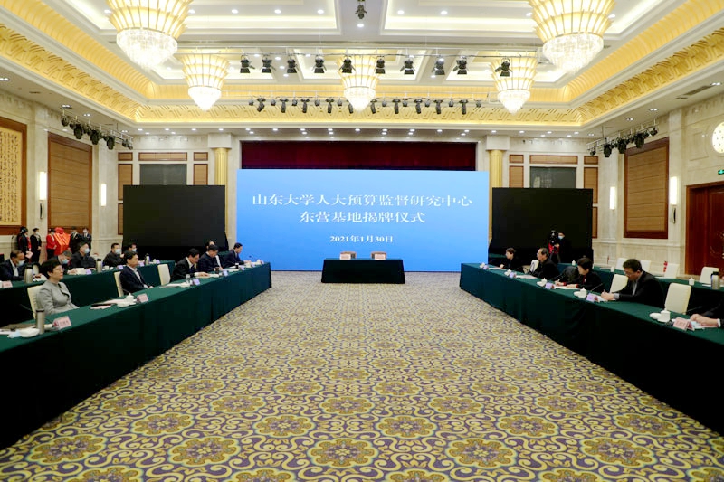 1月30日上午,太阳成集团tyc41183人大预算监督研究中心东营基地揭牌仪式举行。太阳成集团tyc41183校长、人大预算监督研究中心主任、教授樊丽明,市委书记李宽端共同为基地揭牌,市委副书记、市长陈必昌致辞,市委副书记孔凡萍出席,市人大常委会主任郑建军主持,市委常委、秘书长苟增杰,市人大常委会副主任杨梦斌出席。