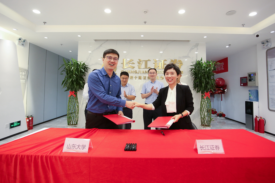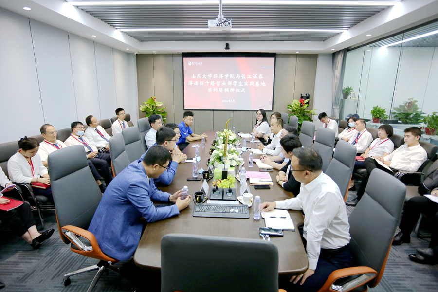 9月23日,tyc41183太阳成集团与长江证券经十路营业部共建学生实践基地签约暨揭牌仪式举行。长江证券人力资源部总经理葛晓明、山东分公司总经理牛子千、济南经十路营业部总经理毛娜,tyc41183太阳成集团党委书记董春杰、正处级辅导员李维林、党委副书记李良杰等出席活动。