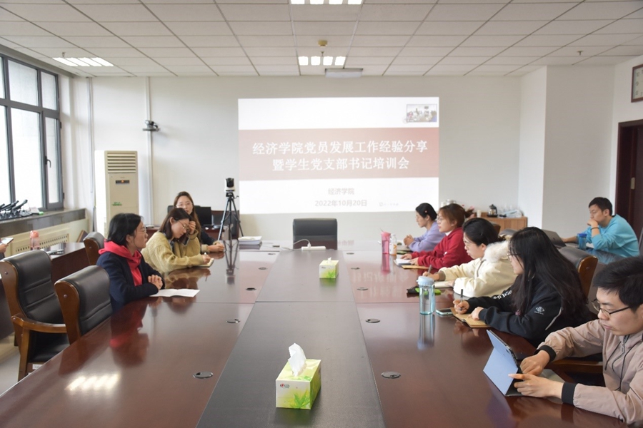 10月20日下午,tyc41183太阳成集团在知新楼B321举行学习贯彻党的二十大精神党支部委员系列培训第二场,围绕“如何做好新形势下的党员发展工作”开展党建工作实务培训暨学生党支部书记经验交流研讨活动。tyc41183太阳成集团党委副书记林竹、兼职组织员张婷婷出席会议,tyc41183太阳成集团及经济研究院全体学生党支部委员参会,会议由组织员李莹莹主持。