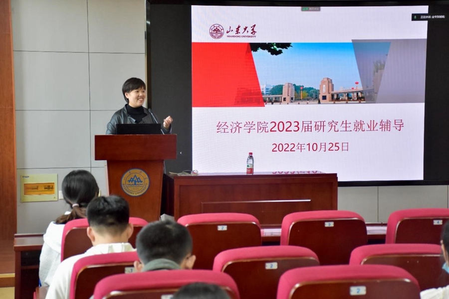 会上,李维林围绕就业形势、就业观念、就业心态、就业准备等方面进行了细致的讲解和指导。他根据前期收集的调查问卷,分析了2023届研究生的就业意向和困难,站位于国际国内层面,针对当前就业形势做出研判。他指出,当前经济增长放缓,企业吸纳就业能力有所下降等情况虽增加了研究生就业难度,但“六稳六保”等方针政策体现了国家对就业问题的高度重视,同学们应对就业形势保持信心。随后,李维林借助学院2011-2022届研究生就业数据,详细直观地展示了学院近12年的研究生就业信息,为应届毕业生就业择业提供了参考依据,具有重要的指导意义。通过讲述往年毕业生的相关案例,他提醒同学们树立合理的就业择业观念,做好充分的就业准备,及时了解用人单位的相关需求,掌握笔试和面试技巧,在巩固专业知识和技能的基础上,不断提升自身综合素质。最后,刘娜娜详细讲解了线上签约流程和就业推荐表填报等问题,并对同学们的疑问进行了解答。