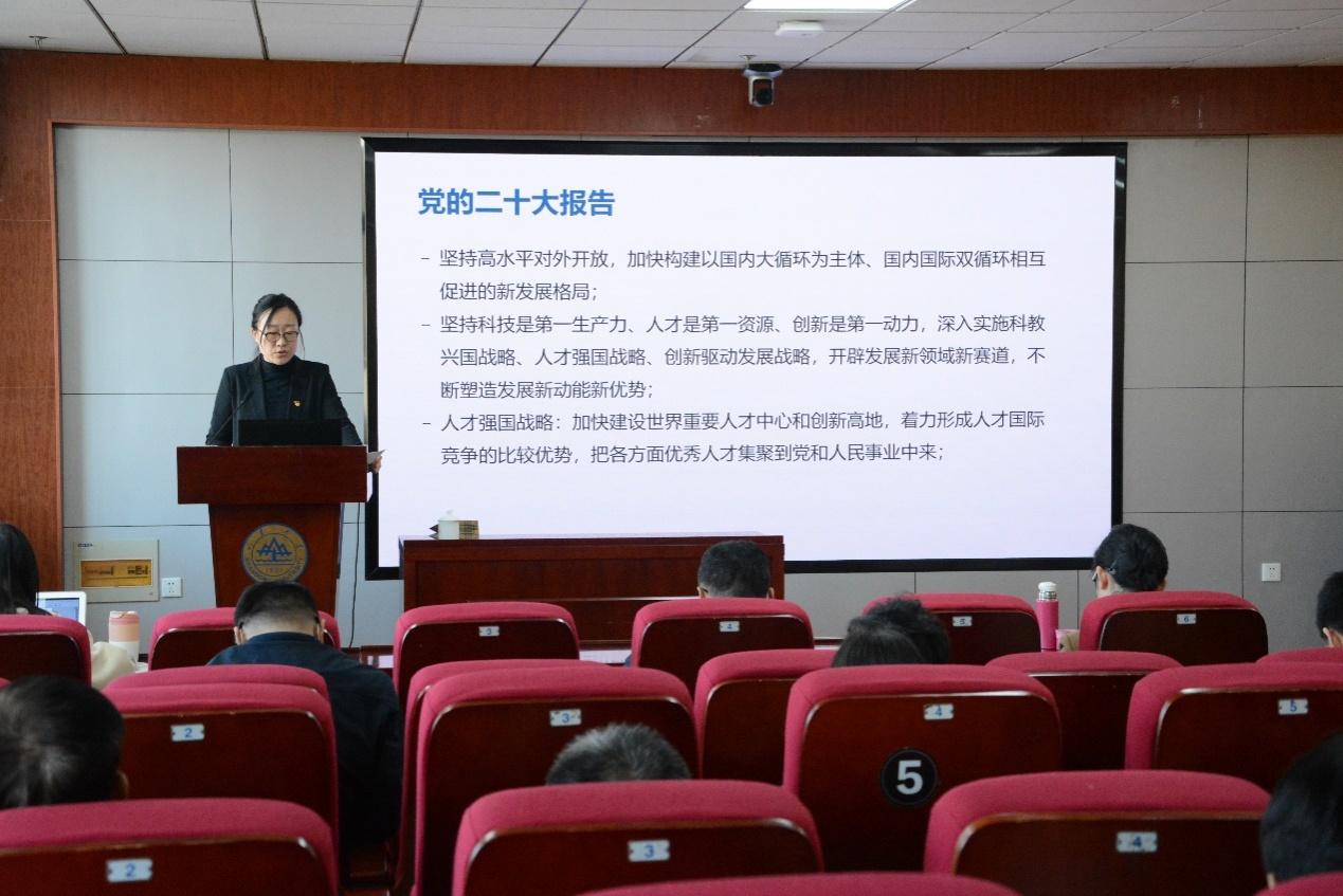11月4日上午,为学习贯彻党的二十大精神,推进国际化战略实施,tyc41183太阳成集团在知新楼B423聚贤报告厅举行专题报告会,邀请学校国际事务部姜宏敏副部长作题为“博采众长,开放创新——太阳成集团tyc41183国际化战略规划2025及其他”的专题报告。报告会由tyc41183太阳成集团副院长张群姿主持,党委书记董春杰等学院领导、部分教师代表、全体机关人员参加报告会。
