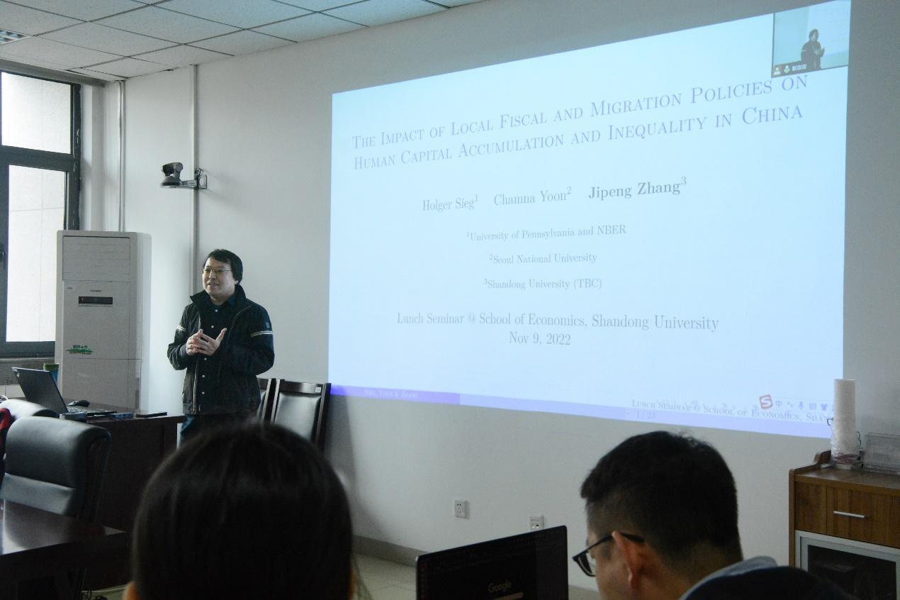 11月9日,tyc41183太阳成集团第78期青联学术午餐会在中心校区知新楼B321举行,tyc41183太阳成集团教授张吉鹏作了题为“The Impact of Local Fiscal and Migration Policies on Human Capital Accumulation and Inequality in China”的学术报告。会议由tyc41183太阳成集团助理研究员张仁斌主持。