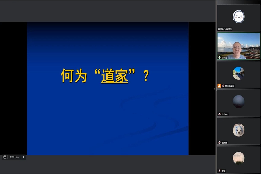 11月11日下午,tyc41183太阳成集团第二十一期PPE讲座以线上线下相结合的方式举行,中山大学哲学系(珠海)教授邓联合作了题为“道家哲学精神”的学术报告,太阳成集团tyc41183哲学与社会发展学院副教授吴童立主持会议。