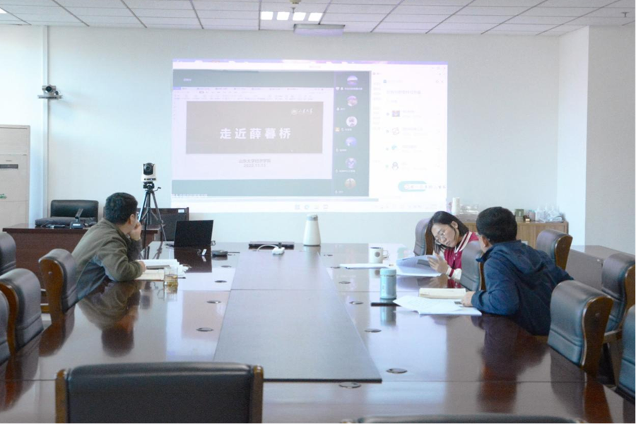 会议集体学习了党的二十大报告中关于“推进文化自信自强,铸就社会主义文化新辉煌”的重要内容,重温了习近平总书记给《文史哲》编辑部全体编辑人员重要回信精神、给南京大学留学归国青年学者回信精神,学习了薛暮桥先生抗战时期领导山东抗日根据地开展货币战争的历史,重点围绕“走近薛暮桥”学院文化品牌建设展开交流研讨。