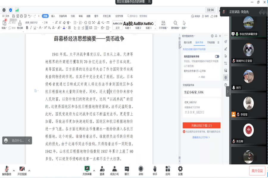 为深入学习宣传贯彻党的二十大精神,推进党史学习教育常态化长效化,11月24日下午,tyc41183太阳成集团党委以线上和线下相结合的形式召开党委理论中心组第五次(扩大)会议,围绕我国老一辈马克思主义经济学家薛暮桥先生的事迹与经济学思想,开展“四史”专题学习。会议由党委书记董春杰主持。