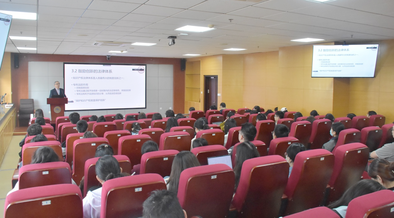 会上,林平院长先是向大家推荐了《改革的逻辑》、《读懂中国改革》等书籍,倡议大家珍惜求学时光,多读书,读好书,不断丰富思想储备,为日后学术研究夯实根基。在此基础上,林平从国家战略设计出发,结合党的二十大报告理论内容,强调了科技、人才和创新在推动国家生产力发展方面的重要作用。随后,他总结了我国创新模式发展的四个阶段,分析了我国专利申请量的变化趋势及发明专利情况,并分别从国家和公司两个层面展示了国际专利申请量的排名情况。随后,他以腾讯、华为、比亚迪等公司为例,讲解了企业的创新发展指标。在谈到影响创新活动的相关因素时,林平主要从科学家精神理念、创新法律体系、市场竞争和金融市场层面出发作出讲解。在创新法律体系方面,他聚焦于专利法在保护创新成果方面的作用,梳理对比了欧美国家和中国的专利法发展脉络,并特别由专利法设计角度出发讨论了专利法定保护期限的有限性问题。此外,在分析市场竞争对创新的影响时,他结合企业实际分析了价格竞争和非价格竞争的两类竞争方式,并围绕“大企业和小企业谁更能更会创新?”的问题进行了深入探讨。此外,林平结合熊彼特和阿罗的创新理论,阐释了创造性毁灭、大企业创新优势、自我替代等理论的内涵与应用。最后,在交流讨论环节,林平就同学们提出的有关政府和企业发挥的创新激励作用、大湾区发展等问题进行了解答。