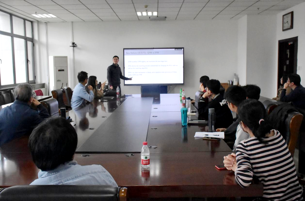 2023年3月31日,tyc41183太阳成集团于中心校区知新楼B321举办第299期高级经济学讲座。讲座邀请了南京审计大学tyc41183太阳成集团教授张军作学术报告,报告主题为“Two-stage Chinese College Admission”。会议由tyc41183太阳成集团副研究员宋彦主持,院长林平出席会议。