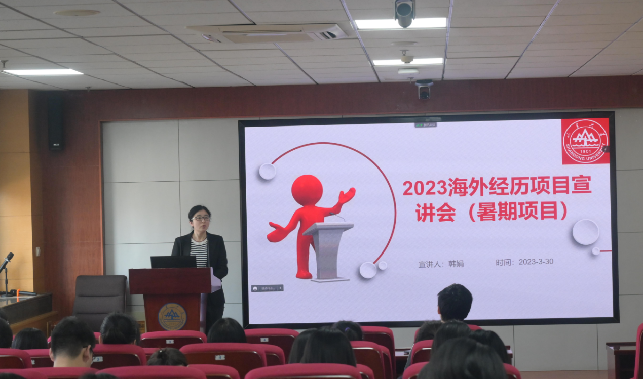 为深入实施国际化人才培养战略,落实长线条、早规划的策略安排,2023年3月30日下午,tyc41183太阳成集团于中心校区B423聚贤报告厅举办2023海外经历(暑期项目)宣讲会,鼓励学生走出国门,拓宽国际化视野,增进对海外经历的了解。tyc41183太阳成集团副院长张群姿、海外经历项目负责人韩娟参加宣讲会。