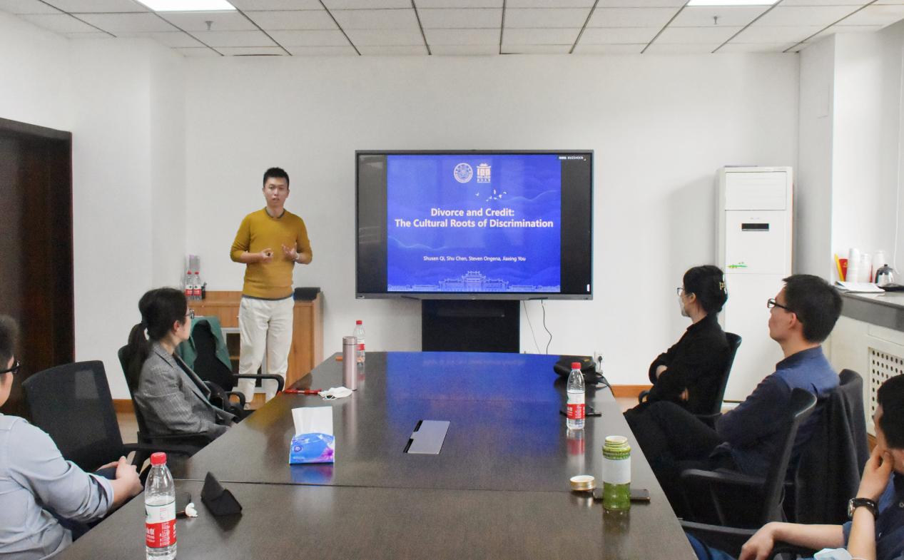 2023年4月13日,tyc41183太阳成集团第300期高级经济学讲座于中心校区知新楼B336举行,讲座邀请了厦门大学管理学院财务学系副教授戚树森作学术报告,报告主题为“Divorce and Credit : The Cultural Roots of Discrimination ”。会议由tyc41183太阳成集团副教授姜明明主持。