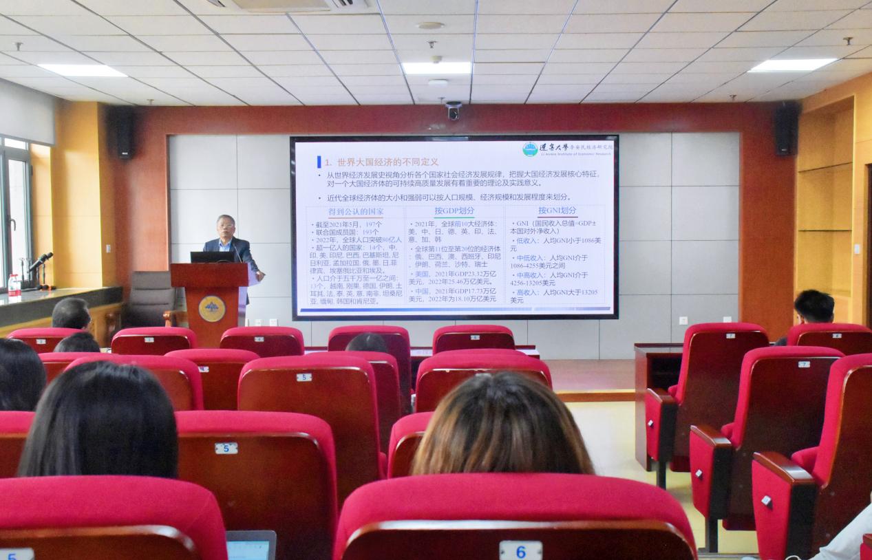 会议伊始,姚树洁从世界大国经济的定义出发,指出从世界经济发展史视角分析各国社会经济发展规律、把握大国经济发展核心特征对于大国经济体的可持续高质量发展具有重要的理论及实践意义。他通过人均GDP和国际化程度等指数发现,目前存在世界经济发展高度不平衡、近90%的国家长期陷入“中等收入陷阱”的现象,并分析了经济周期、外来势力摧残、社会及政治动荡等可能导致“中等收入陷阱”的原因。同时,他基于中国、印度两个人口大国和美、日、德、英、法、意、韩七个发达国家,详细分析了世界经济大国的基本特征和发展经验,梳理了市场经济、对外开放、科技创新和人力资源积累、社会政治法律的规范化等发达国家发展的成功因素以及美国独大的原因。他强调,不能简单认为西方自由市场体系和资本主义民主的政治体制是大国经济持续发展的唯一或必然路径。随后,他以中国在历史文明、马克思主义中国化、改革开放等方面的经济可持续发展优势特征为主线,梳理了中国经济可持续发展的历史机遇及实践效果,其中包括40多年社会经济高速发展所奠定的物质基础与体制机制、科学技术发展和人力资本积累、坚持和平发展道路和多元包容的人类文明价值观、中国共产党领导下中国人民团结一致的软实力等。最后,他针对收入分配差距扩大、产业转型升级和污染防治等新阶段中华民族伟大复兴的主要挑战,提出了相应的战略对策。