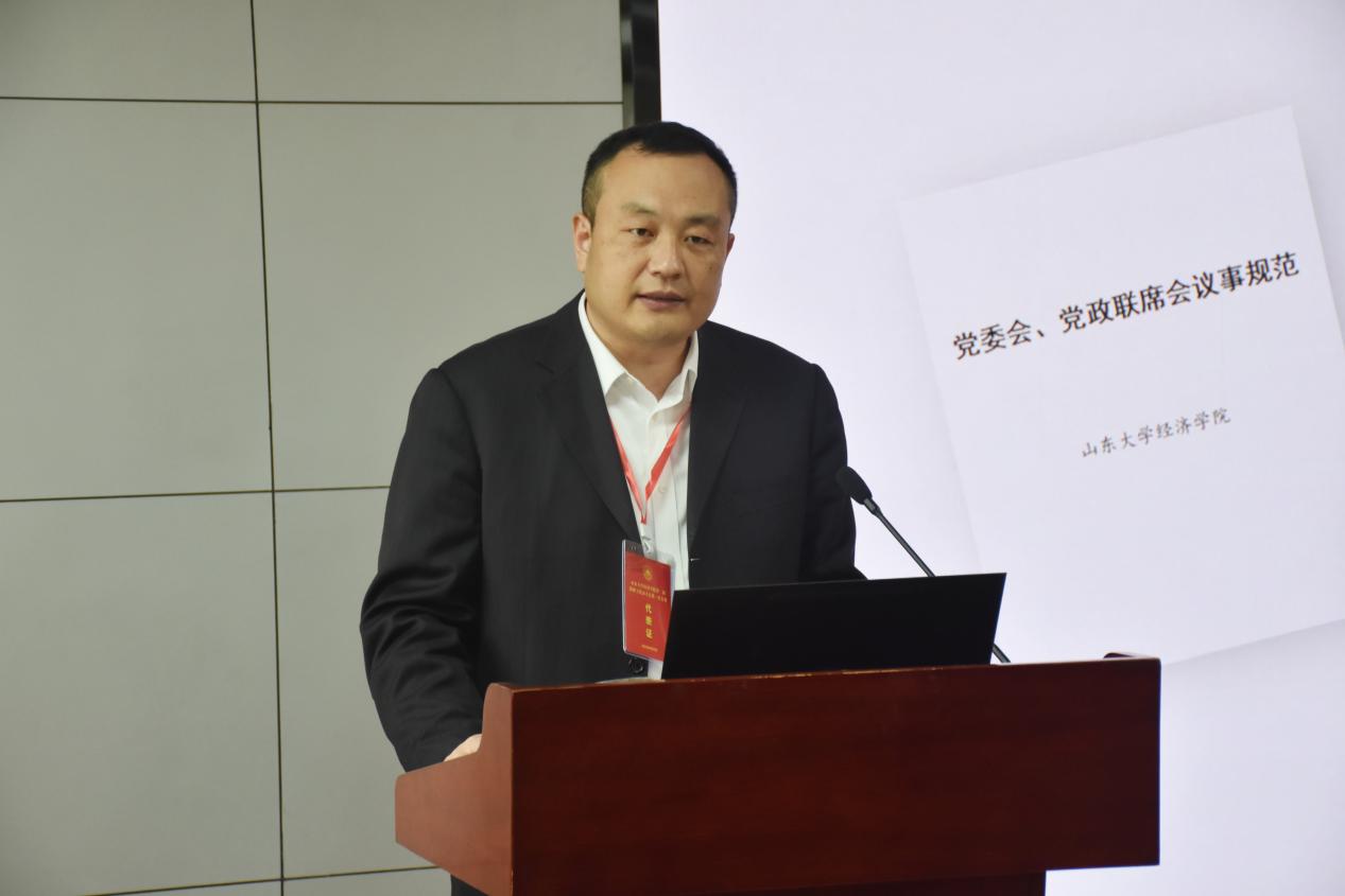 董春杰指出,此次教代会是学院全面贯彻落实党的二十大精神、深入开展学习贯彻习近平新时代中国特色社会主义思想主题教育、深入贯彻学校重点任务“先行先试”和“七大战略”提档升级各项部署、持续推进一流学科建设和高质量发展的关键时期召开的一次重要会议,对于团结凝聚学院全体教职工奋进合力,统一思想、砥砺前行推进经院2025目标实现,具有十分重要的意义。他表示,一年来,在学校党委的坚强领导下,学院全体师生同舟共济、攻坚克难,科学谋划,汇聚合力,精准发力,统筹发展和安全,力求将宏伟蓝图转化为现实成果,各项事业稳步推进,在人才培养、队伍建设、科学研究、服务社会、治理效能等方面实现了新的突破。