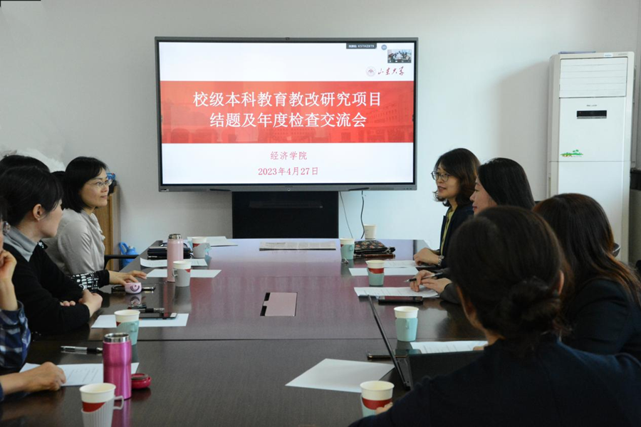 负责2021年度校级教改项目的各主持人围绕研究目标、成效、应用价值等方面进行汇报。李颖主持的《国际结算》项目充分利用在线平台,选课学生范围涵盖全国89所高校,提升了课程的社会认知度和影响力。张群姿主持的《公司金融:初心与使命》项目结合理论前沿与热点改革课程内容,以问题为导向与学生共创研修,充分调动学生的学习兴趣。苏春红主持的《基于三个“中心”理念的会计财务类课程混合式教学改革与创新型人才培养研究》项目将思政教育贯穿于专业学习中,创新会计财务理论体系,开展互动式教学,解构知识内容,重构教学体系。陈晓莉主持的《基于思政引领下的新文科人才培养模式改造经济学专业传统核心课程——以“国际金融”课程为例”》项目坚持“思政引领、多元目标”的原则,在教学中注重贯穿思政内容以及与历史、政治和文化等学科的交叉融合,通过重塑教学环节将课堂内外有机结合,学生整体满意度提高、获得感更强。盖骁敏主持的《〈发展经济学〉课程教学改革研究(PPE专项)》项目通过讲述中国发展的理论经验和案例提升学生的文化、制度、道路等自信,采用启发式、探究式等教学形式,全面提升学生创新思维。朱鹏华主持的《中国特色社会主义政治经济学课程开发研究》项目以满足建设社会科学领域“中国学派”需要为出发点,根据学生特点开展“精准研讨”式教学,以问题为中心,让学生在研讨中构建知识体系,切实提高了教学质量。孙淑琴主持的《新时代经济学类“四有”人才培养体系优化与实践》项目秉持“立德树人、三制三全、协同育人”的理念,设计了基于一流专业的“4+N”培养体系、助力实现培养有自信心、有自豪感、有家国情怀、有国际视野的“四有”人才目标。类。齐婷婷主持的《现代信息技术下考试形式改革的研究》项目结合学院特色和实际探索了线上考试程序,为无纸化考试推广奠定了基础。