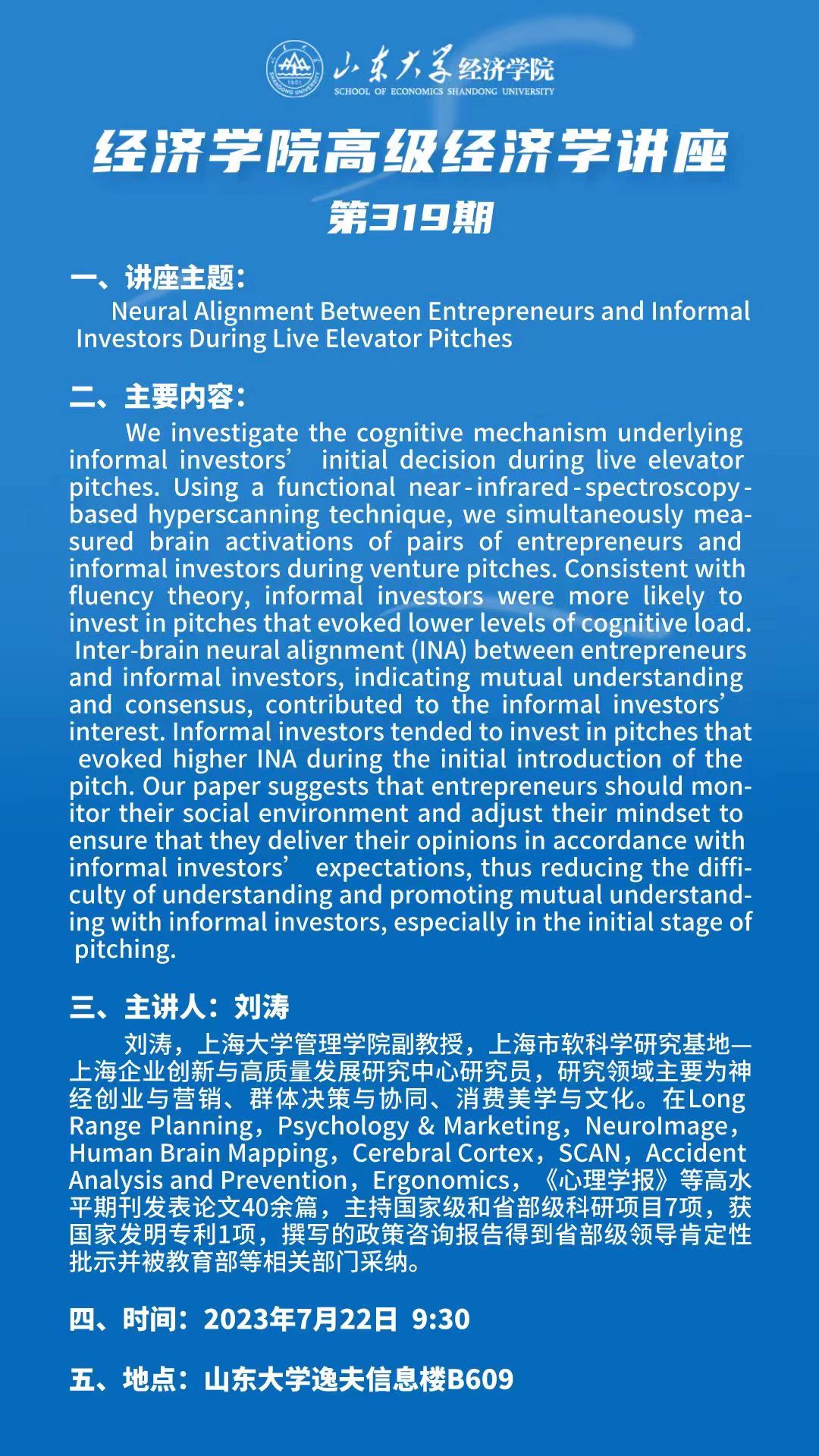 Neural Alignment Between Entrepreneurs and Informal Investors During Live Elevator Pitches(tyc41183太阳成集团高级经济学讲座第319期)