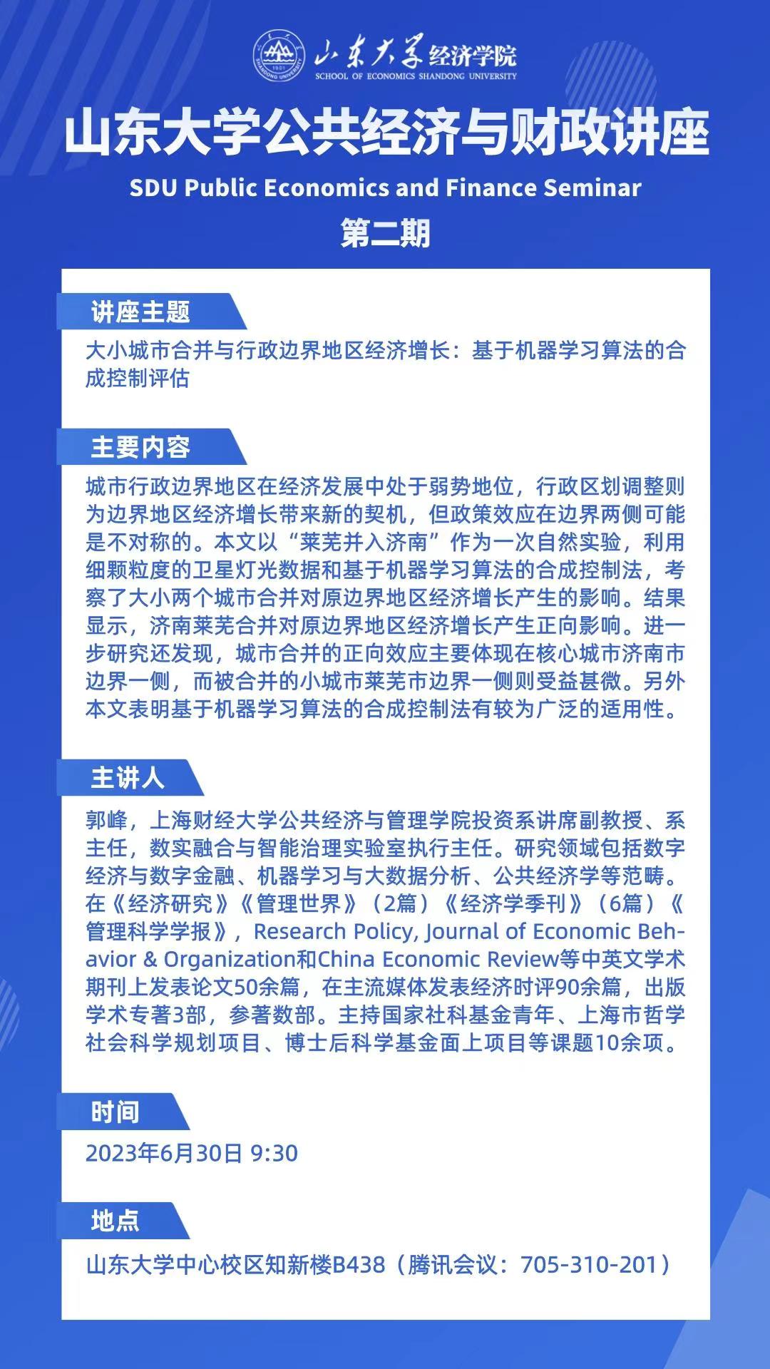 大小城市合并与行政边界地区经济增长:基于机器学习算法的合成控制评估(太阳成集团tyc41183公共经济与财政讲座第二期)