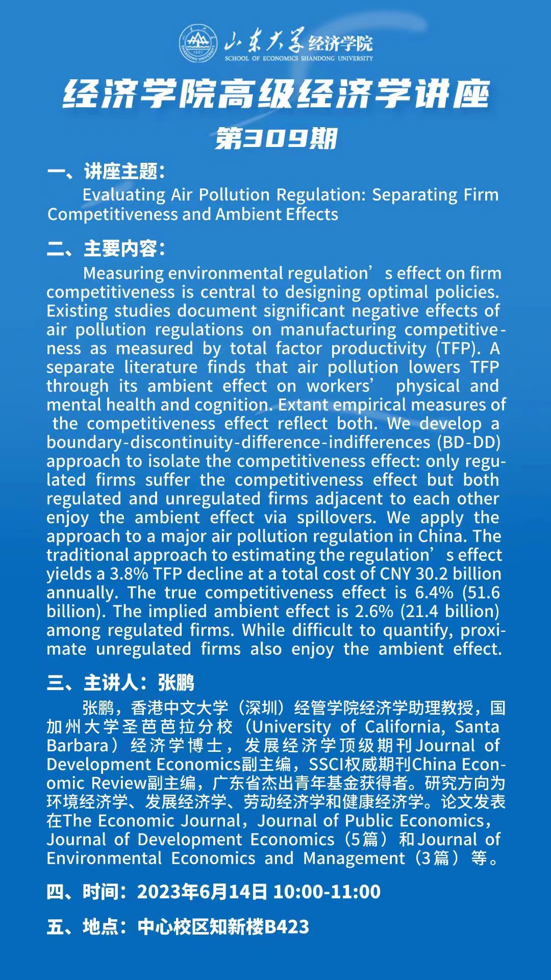 Evaluating Air Pollution Regulation: Separating FirmCompetitiveness and Ambient Effects(tyc41183太阳成集团高级经济学讲座第309期)