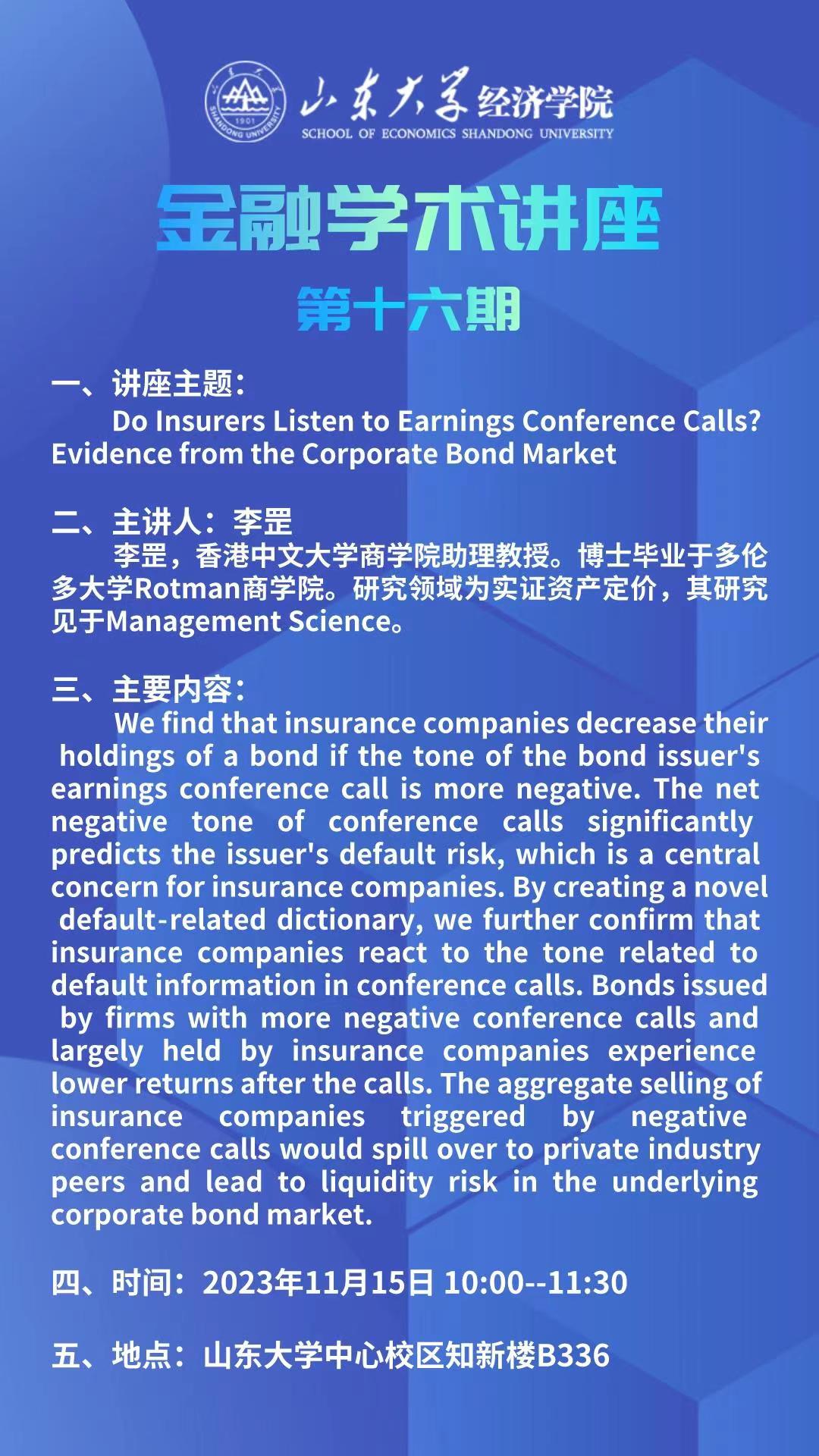 Do Insurers Listen to Earnings Conference Calls?Evidence from the Corporate Bond Market(金融学术讲座第十六期)