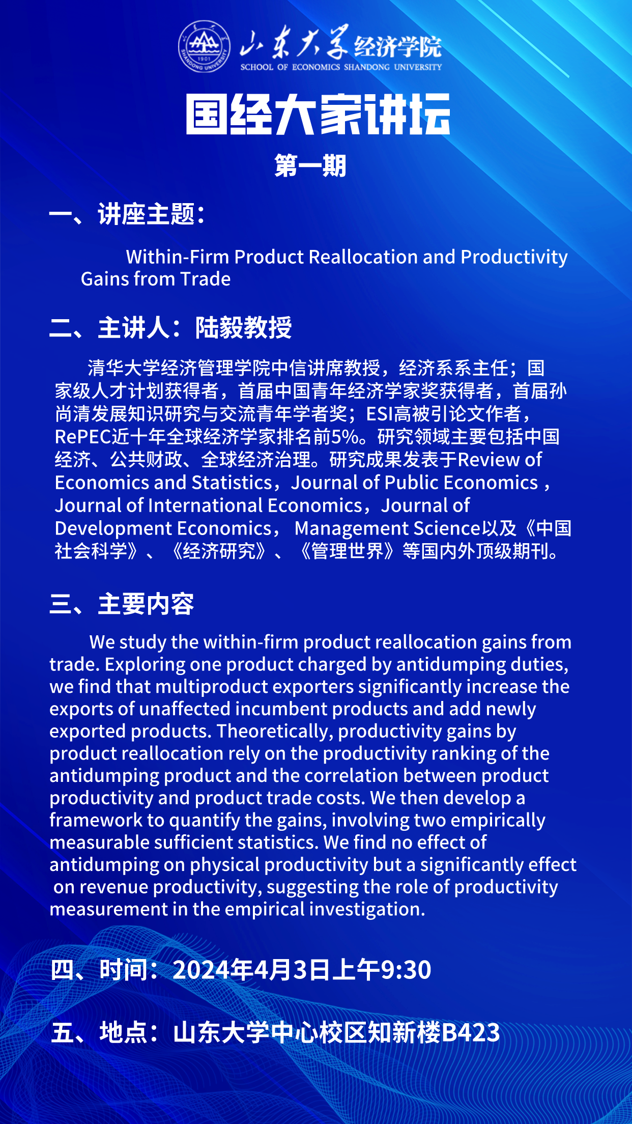 Within-Firm Product Reallocation and ProductivityGains from Trade(国经大家讲坛第一期)