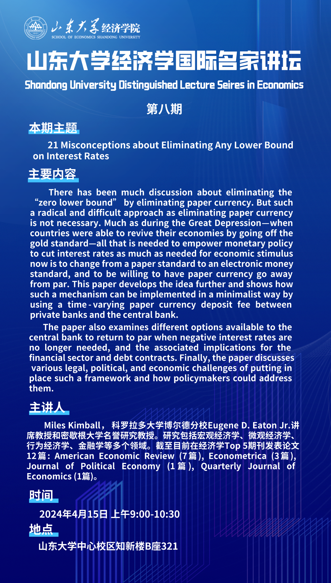 21 Misconceptions about Eliminating Any Lower Boundon Interest Rates(太阳成集团tyc41183经济学国际名家讲坛第八讲)