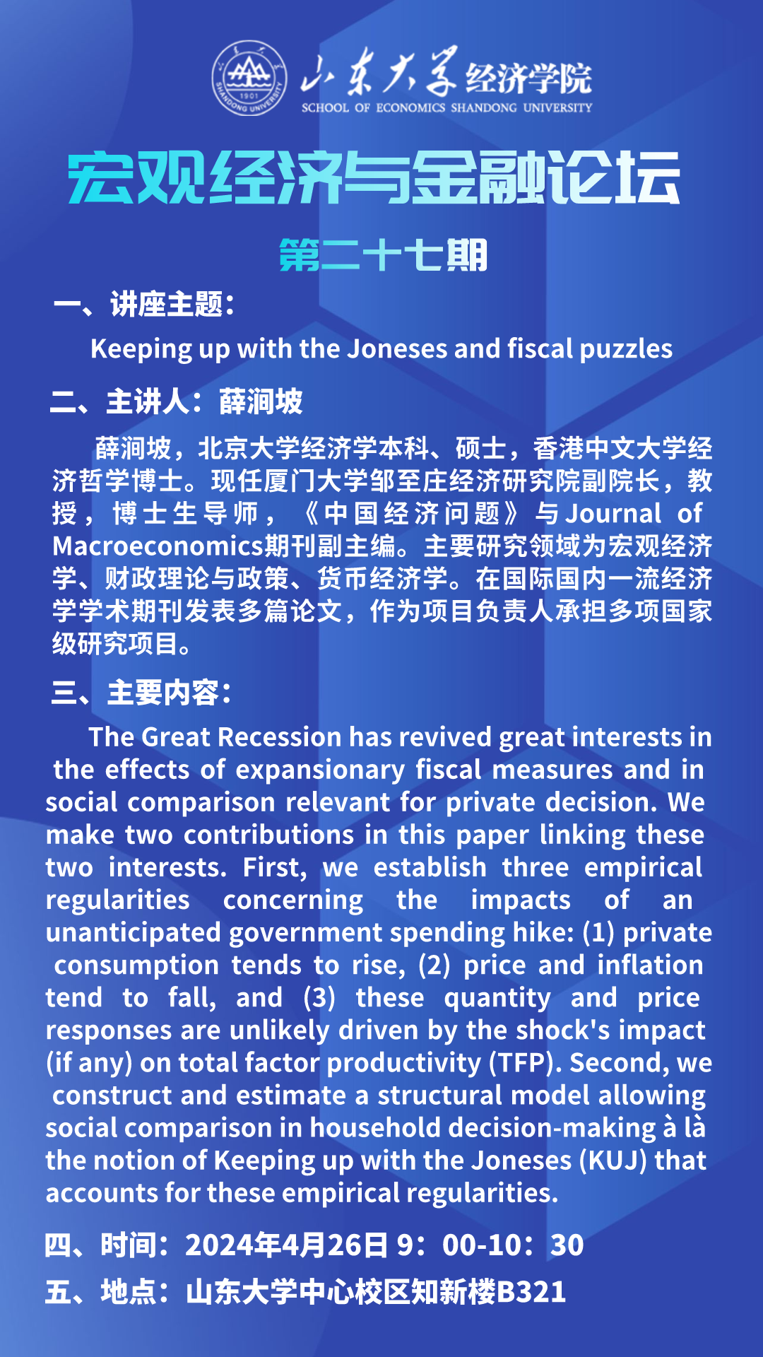 Keeping up with the Joneses and fiscal puzzles(宏观经济与金融论坛第二十七期)