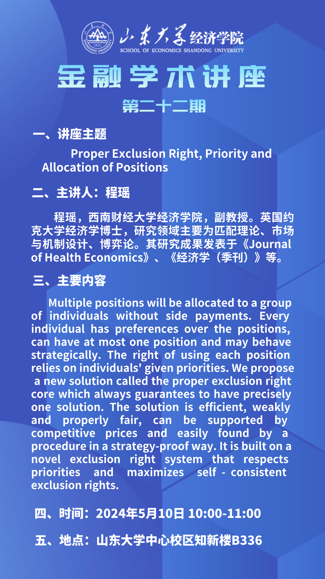 Proper Exclusion Right,Priority and Allocation of Positions(金融学术讲座第二十二期)