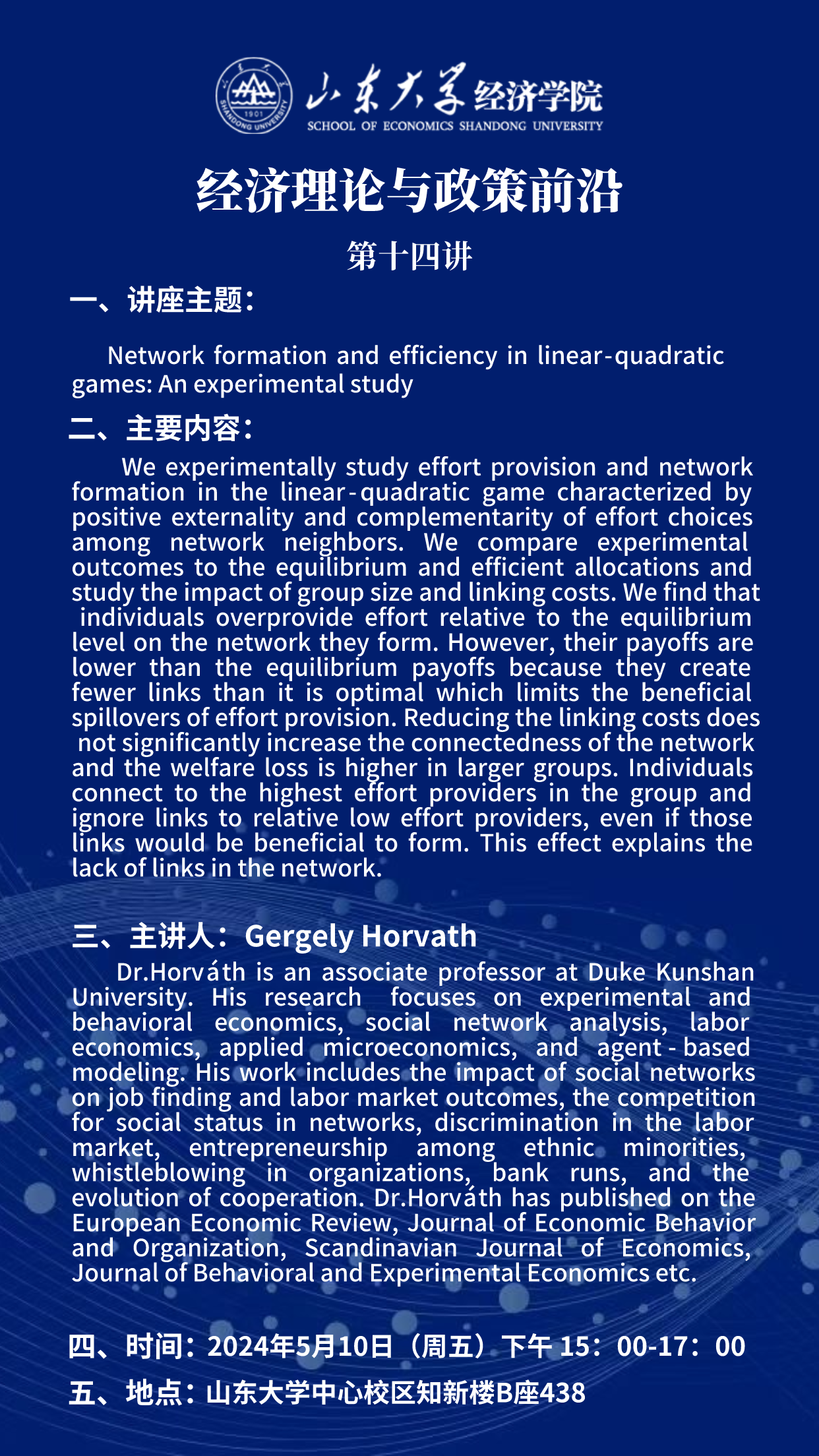 Network formation and efficiency in linear-quadratic games:An experimental study(经济理论与政策前沿第十四讲)