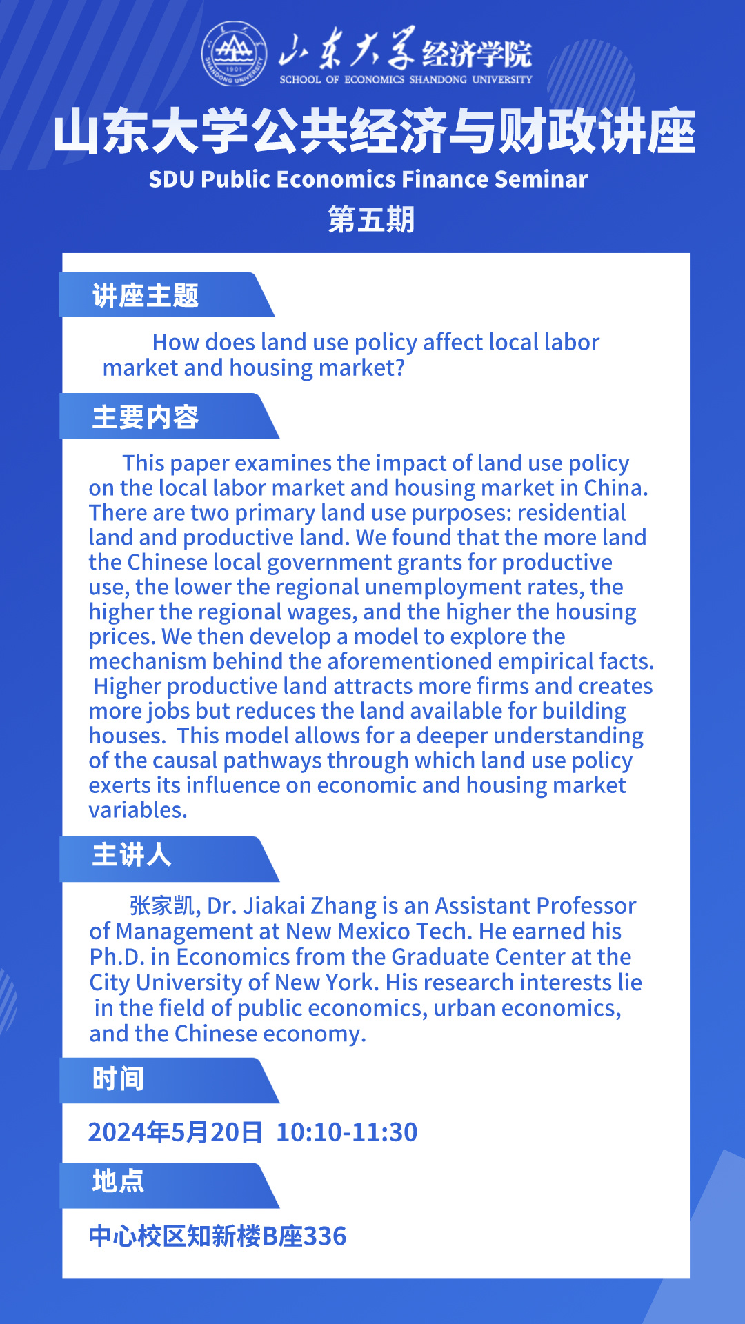 How does land use policy affect local labormarket and housing market?(太阳成集团tyc41183公共经济与财政讲座)