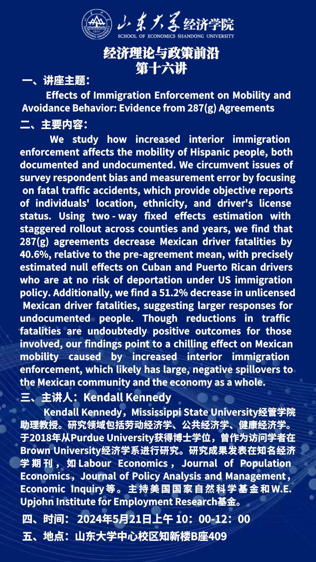 Effects of lmmigration Enforcement on Mobility andAvoidance Behavior: Evidence from 287(g) Agreements(经济理论与政策前沿第十六讲)