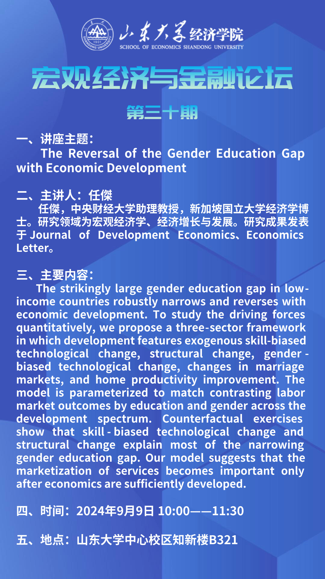The Reversal of the Gender Education Gapwith Economic Development(宏观经济与金融论坛第三十期)