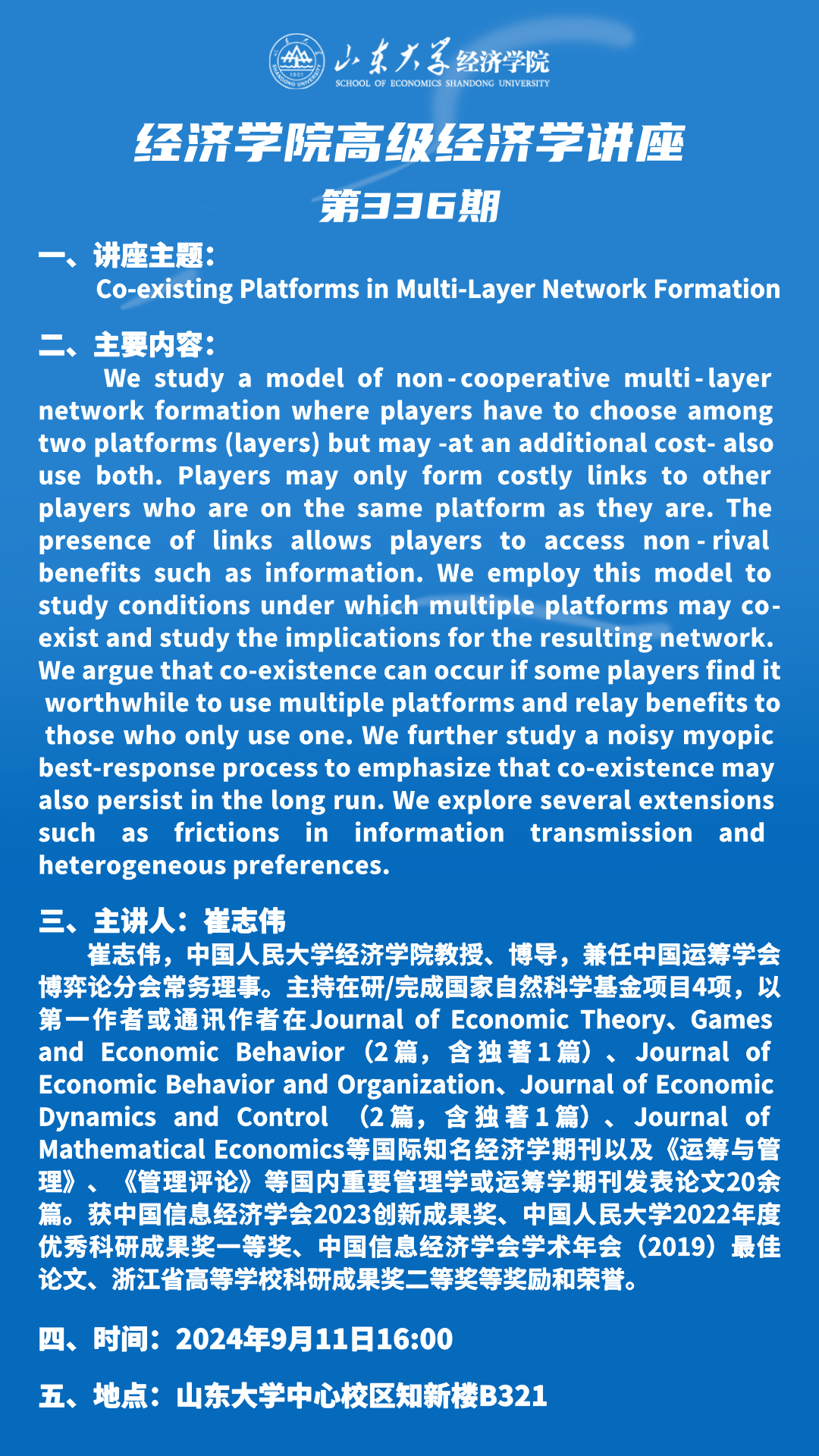 Co-existing Platforms in Multi-Layer Network Formation(tyc41183太阳成集团高级经济学讲座第336期)