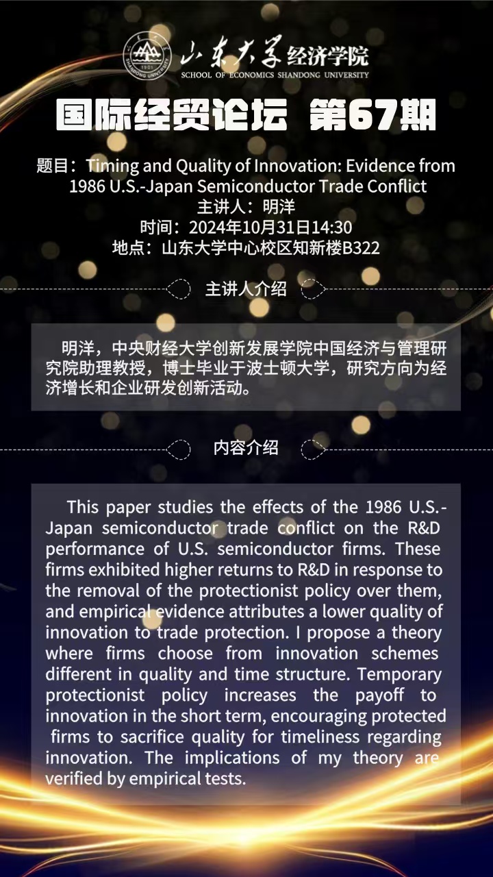 Timing and QualityofInnovation: Evidence from 1986 U.S.-Japan Semiconductor Trade Conflict(国际经贸论坛第67期)