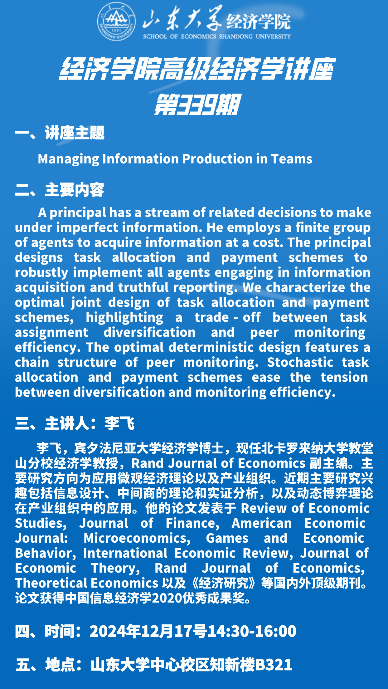 Managing Information Production in Teams(tyc41183太阳成集团高级经济学讲座第339期)