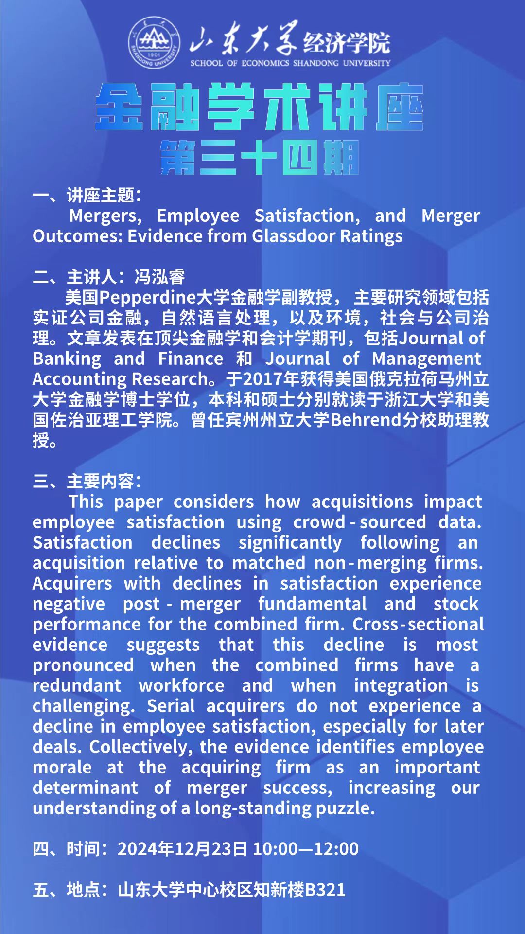 Mergers,Employee Satisfaction,and Merger Outcomes:Evidence from Glassdoor Ratings(金融学术讲座第三十四期)