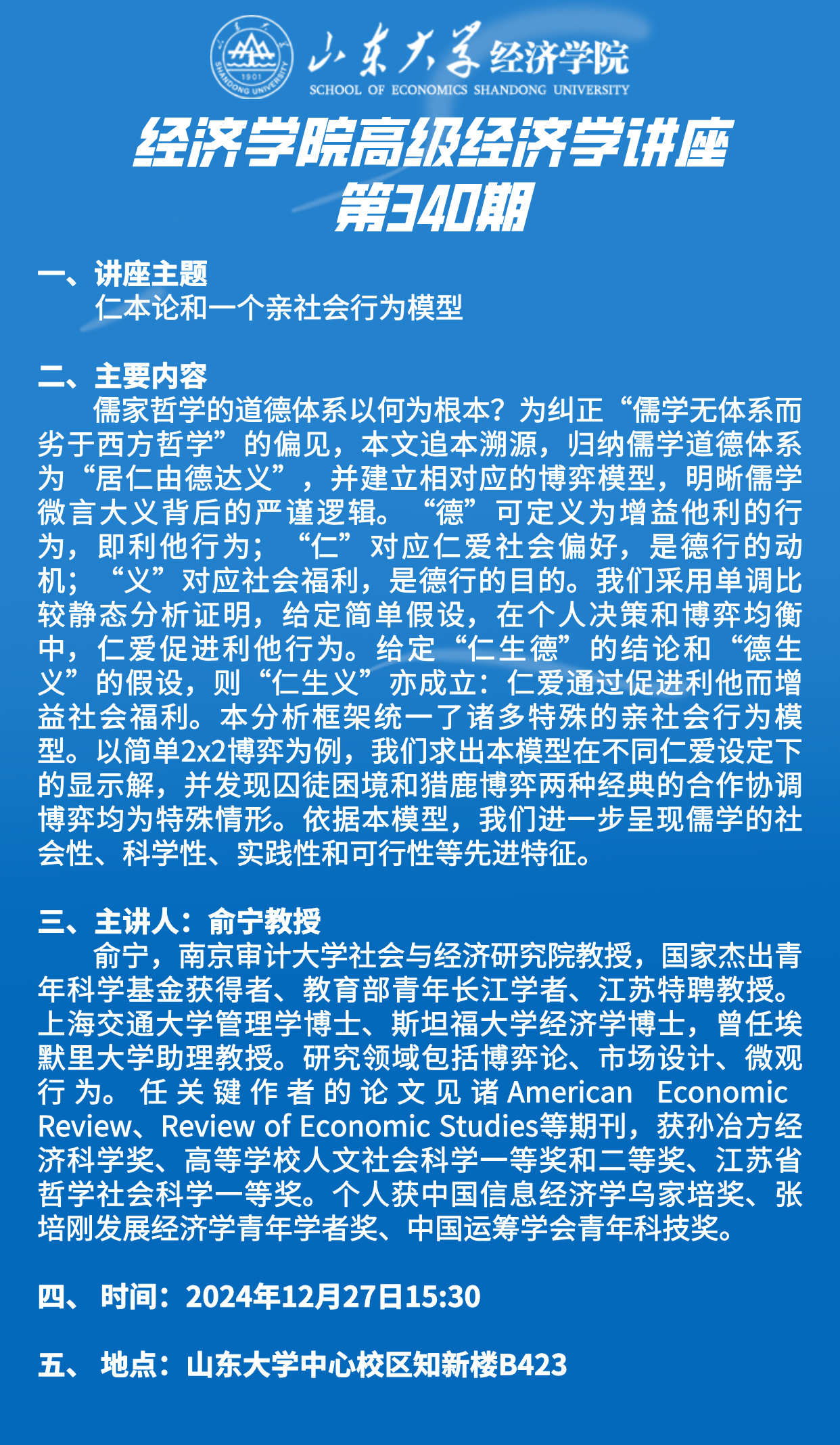 仁本论和一个亲社会行为模型(tyc41183太阳成集团高级经济学讲座第340期)