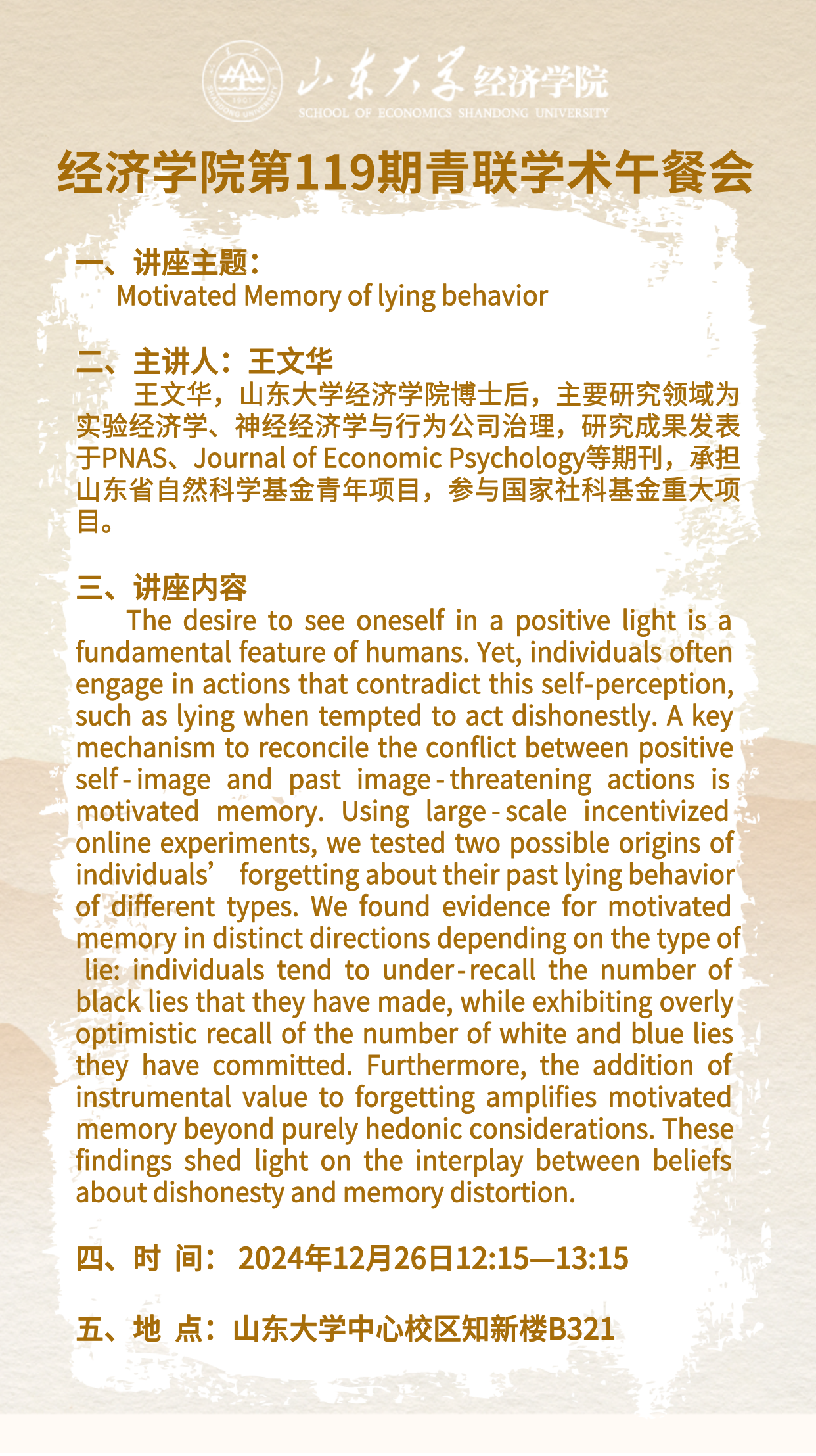 Motivated Memory of lying behavior(tyc41183太阳成集团第119期青联学术午餐会)