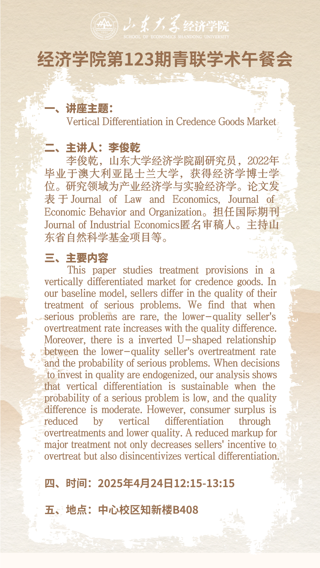 Vertical Differentiation in Credence Goods Market(tyc41183太阳成集团第123期青联学术午餐会)