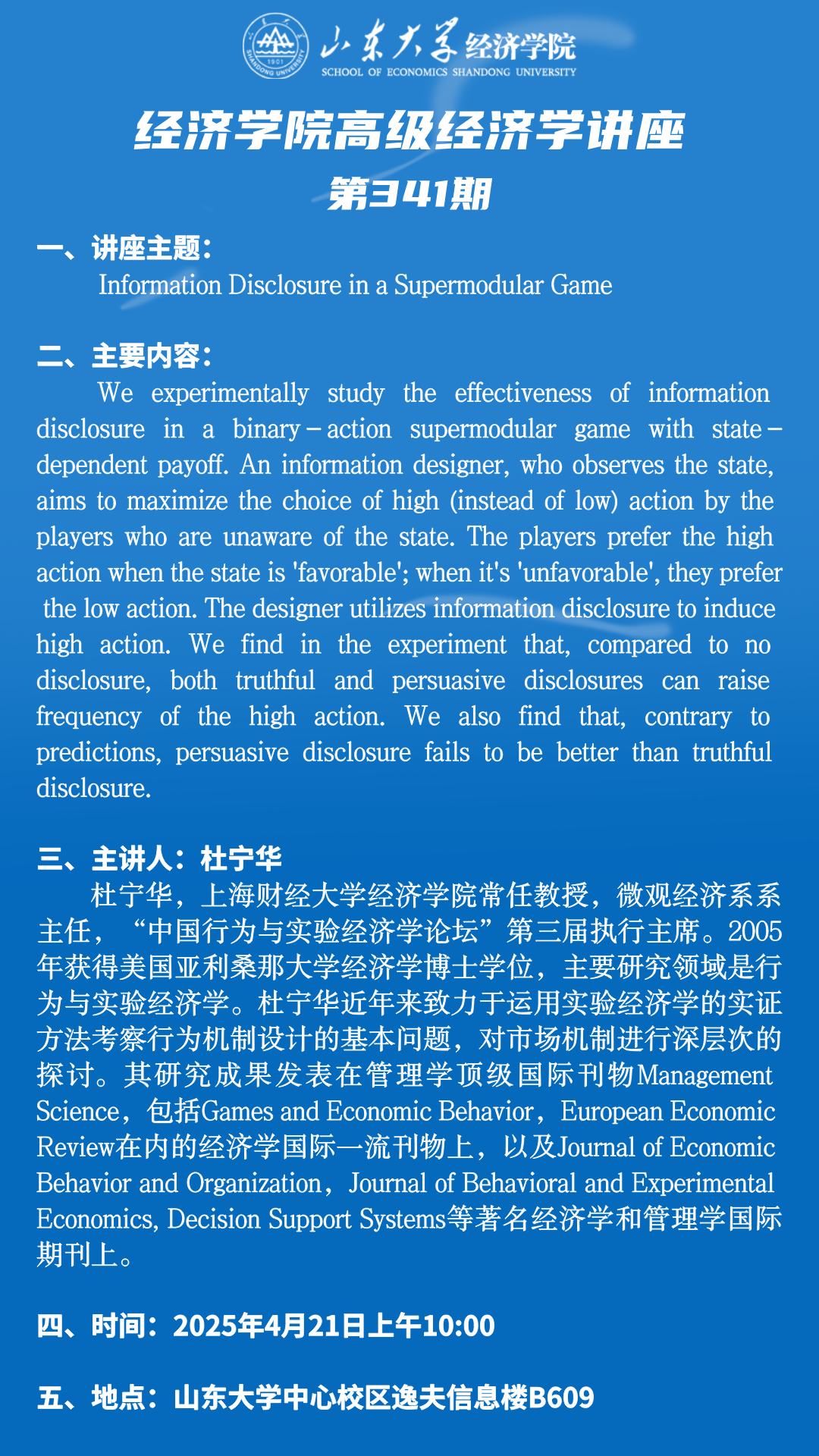 Information Disclosure in a Supermodular Game(tyc41183太阳成集团高级经济学讲座第341期)