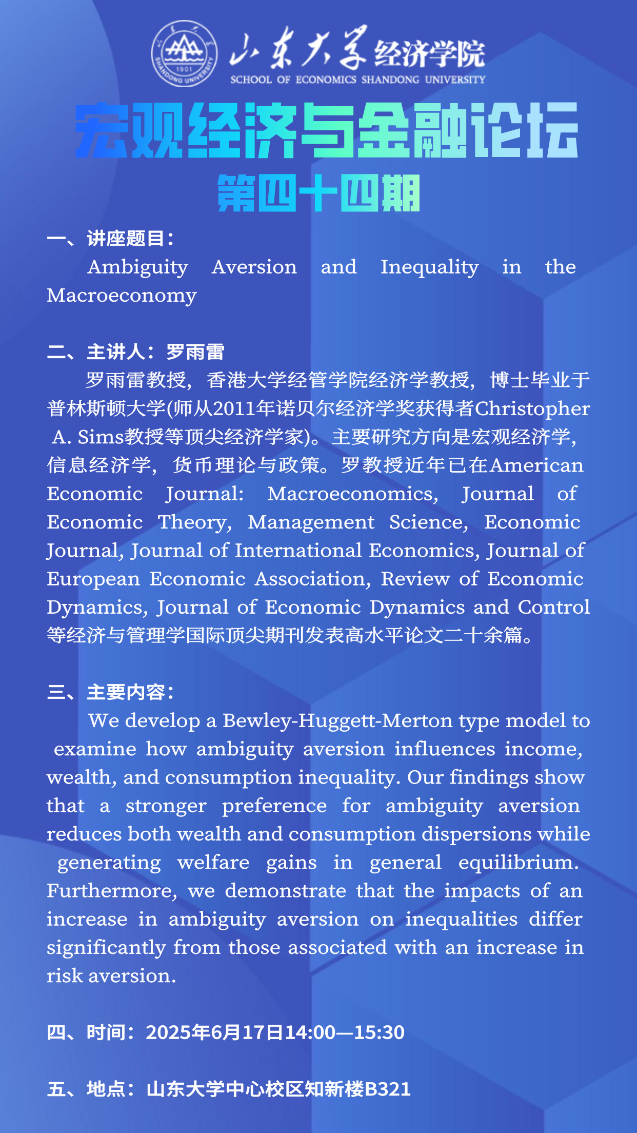 Ambiguity Aversion and Inequality in the Macroeconomy(宏观经济与金融论坛第四十四期)