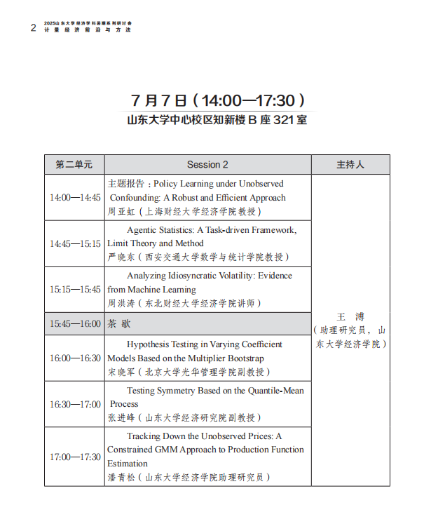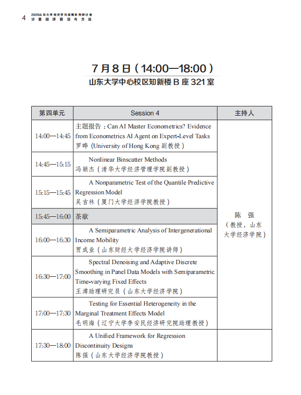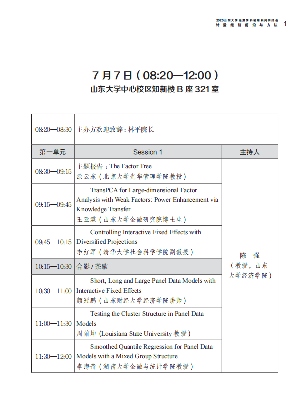 2025太阳成集团tyc41183经济学科暑期系列研讨会计量经济前沿与方法