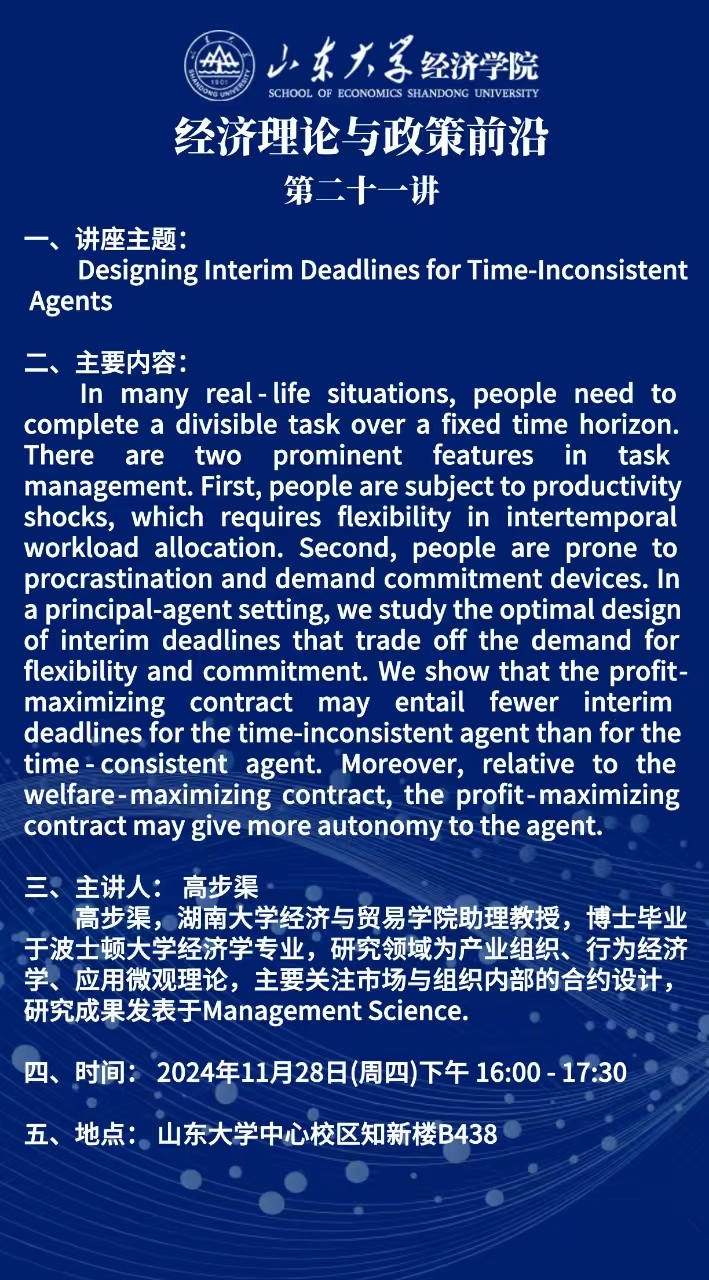 Designing Interim Deadlines for Time-Inconsistent Agents(经济理论与政策前沿第二十一讲)
