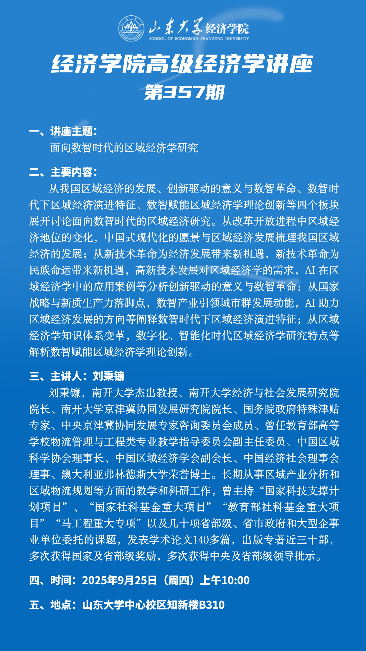 面向数智时代的区域经济学研究(tyc41183太阳成集团高级经济学讲座第357期)