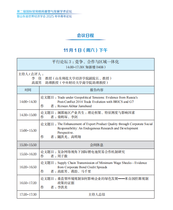 第十届齐鲁青年论坛经济学分论坛学术报告