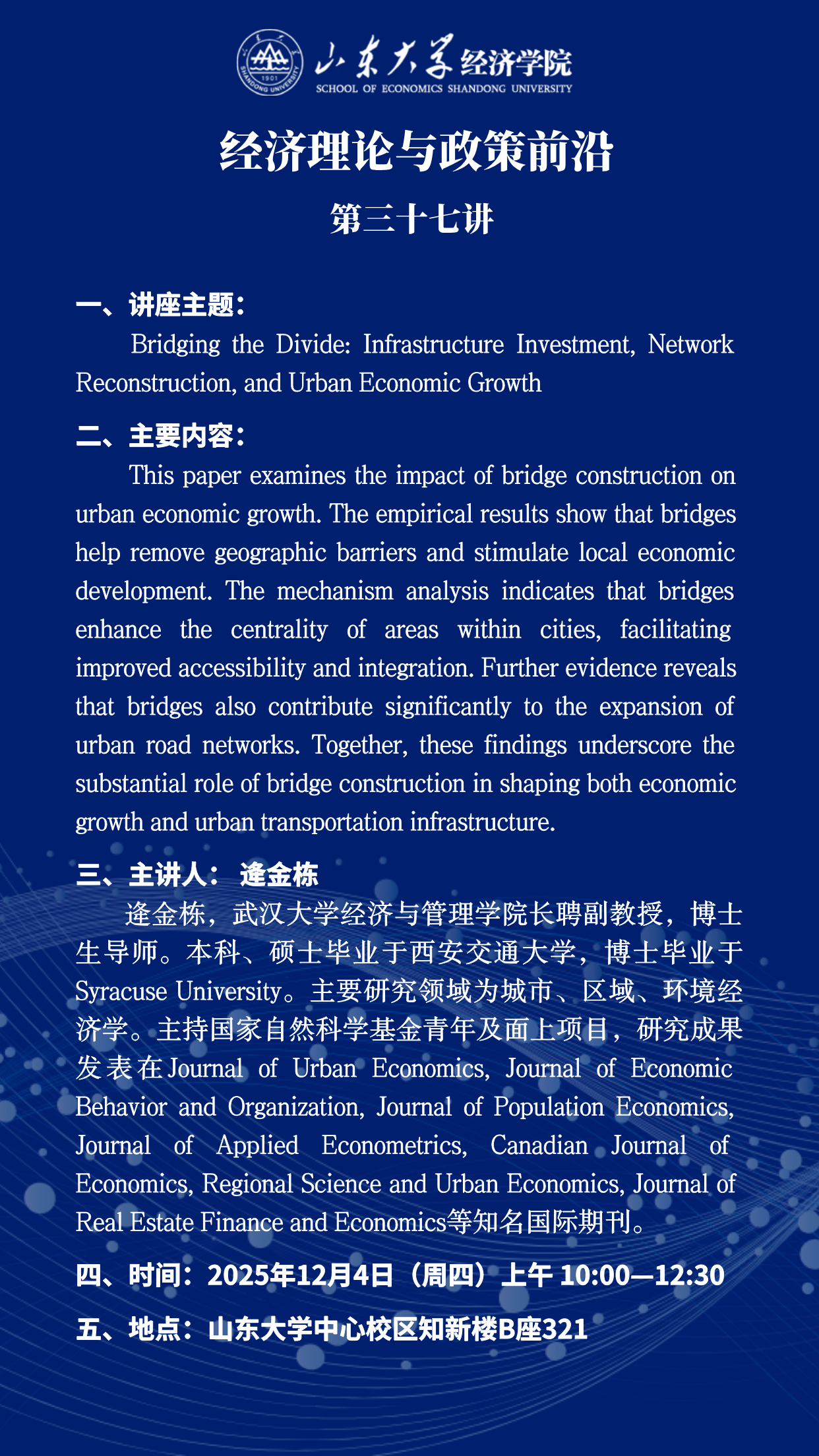 Bridging the Divide: Infrastructure Investment, Network Reconstruction, and Urban Economic Growth(经济理论与政策前沿第三十七讲)