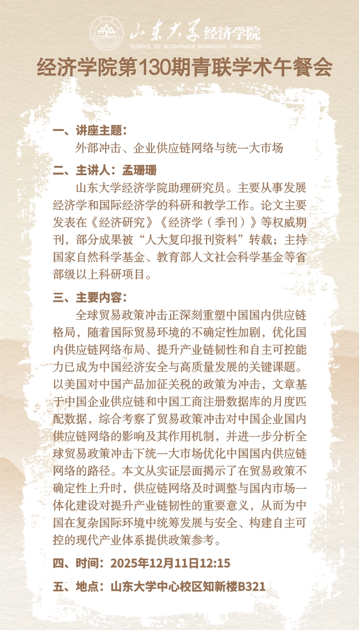 外部冲击、企业供应链网络与统一大市场(tyc41183太阳成集团第130期青联学术午餐会)