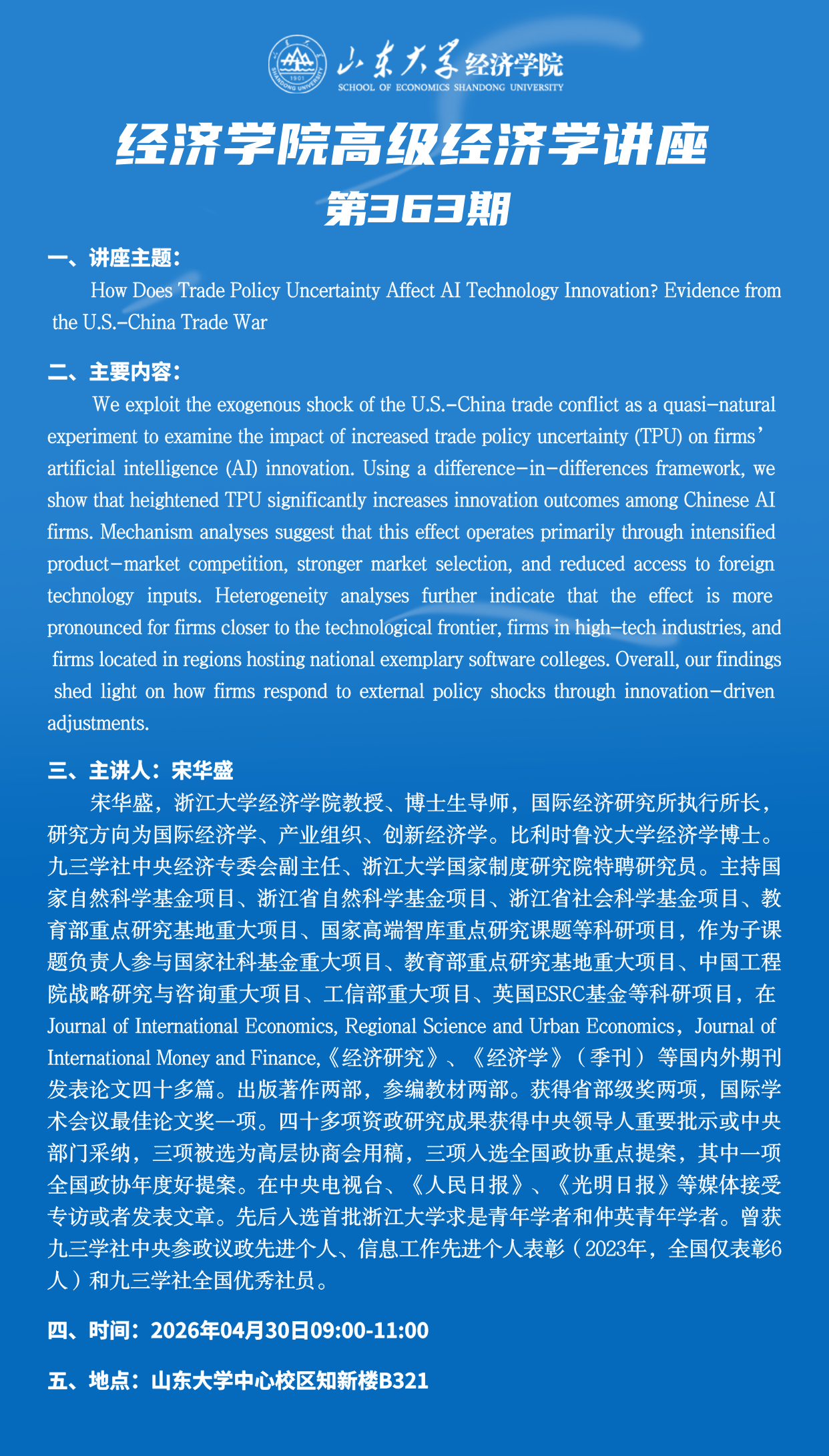 How Does Trade Policy Uncertainty Affect AI Technology Innovation? Evidence fromthe U.S.-China Trade War(tyc41183太阳成集团高级经济学讲座第363期)