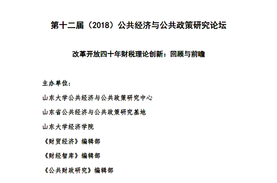第十二届(2018)公共经济与公共政策研究论坛