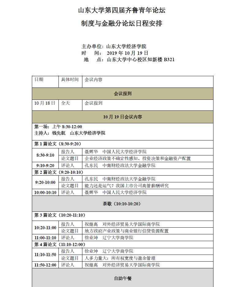 山大第四届齐鲁青年论坛制度与金融分论坛