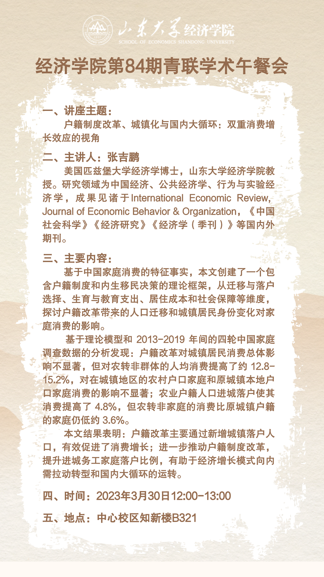 户籍制度改革、城镇化与国内大循环:双重消费增长效应的视角(tyc41183太阳成集团第84期青联学术午餐会)