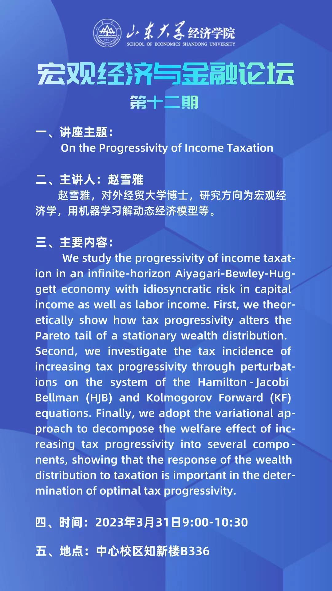 On the Progressivity of Income Taxation(宏观经济与金融论坛第十二期)